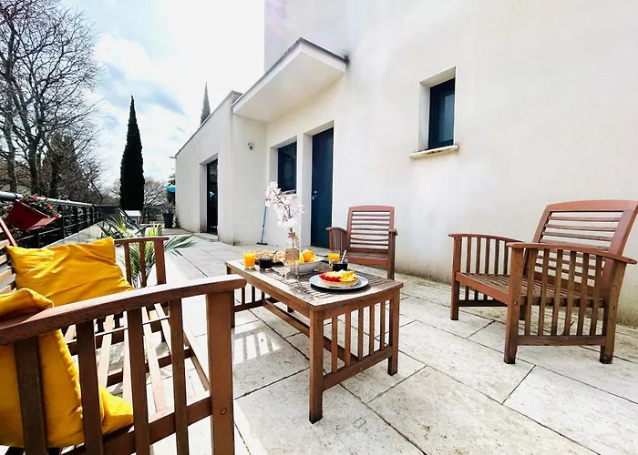 Die Villa La Dolce-Vita-Clim-Terrasse Nîmes liegt etwa 5 Kilometer vom Amphitheater von Nîmes entfernt und verfügt über eine Terrasse mit Blick auf den Garten.